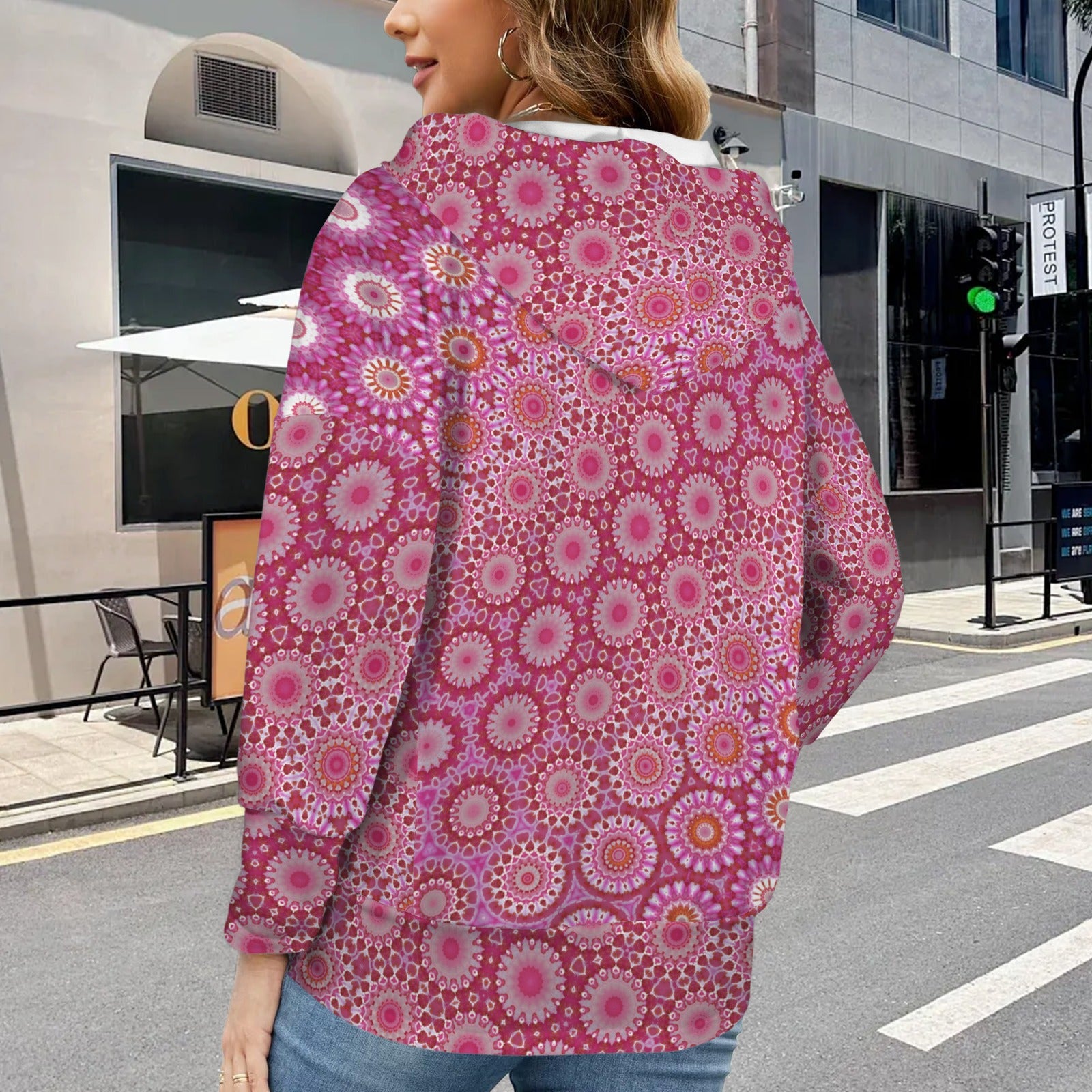 V Neck Pocket Hoodie Raspberry Swirl