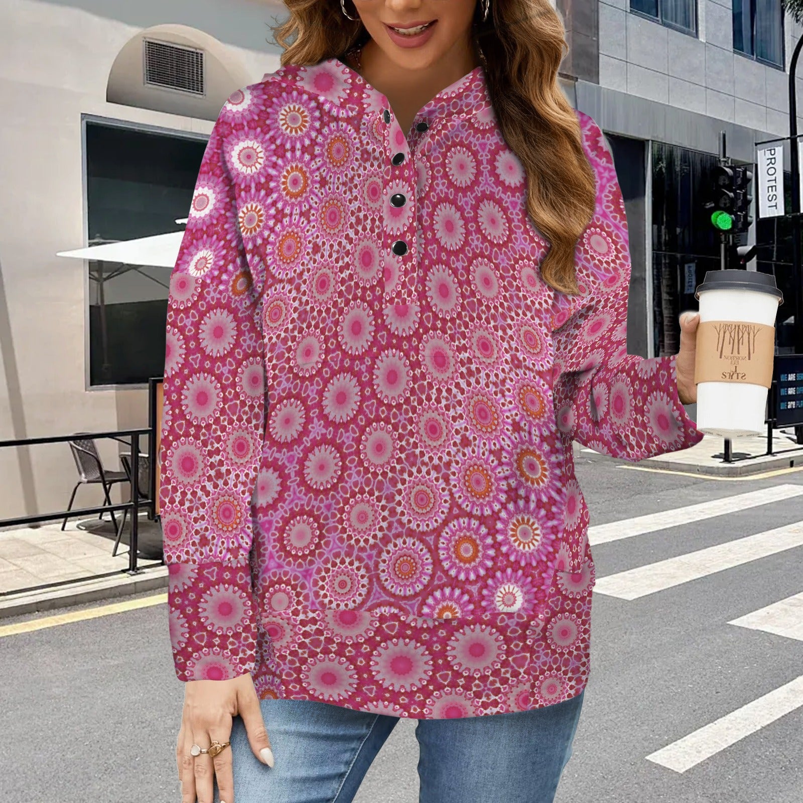 【Accessory Structure】The Women's Button V Neck Pocket Hoodies feature a V-neckline with button detailing, a cozy hoodie and functional front pocket for added convenience.