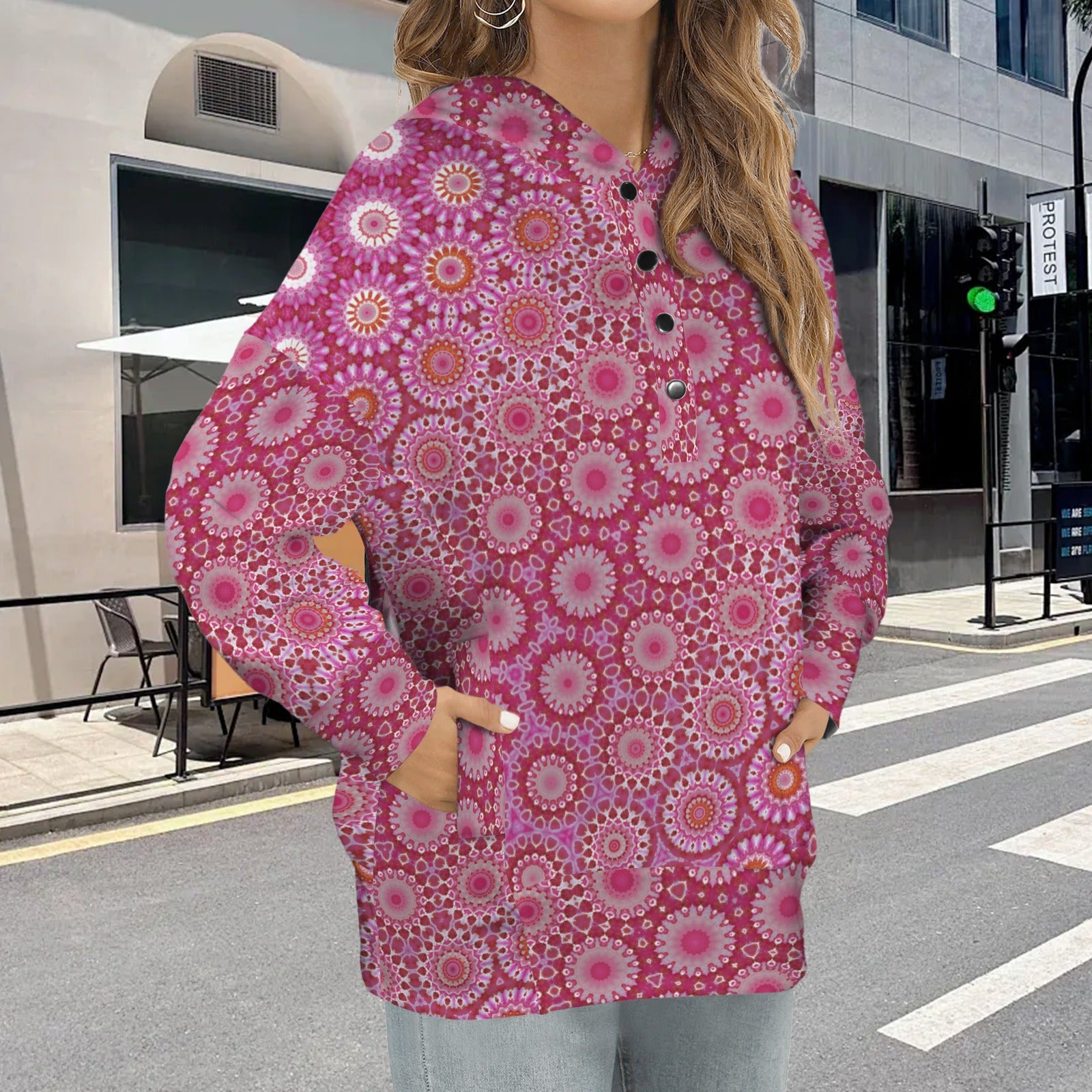 【Product Performance Characteristics】Made from soft, comfortable fabric, this hoodie offers a relaxed fit with warmth and breathability. The buttoned V-neck design adds a stylish touch, while the pockets provide practicality, making it perfect for everyday wear.