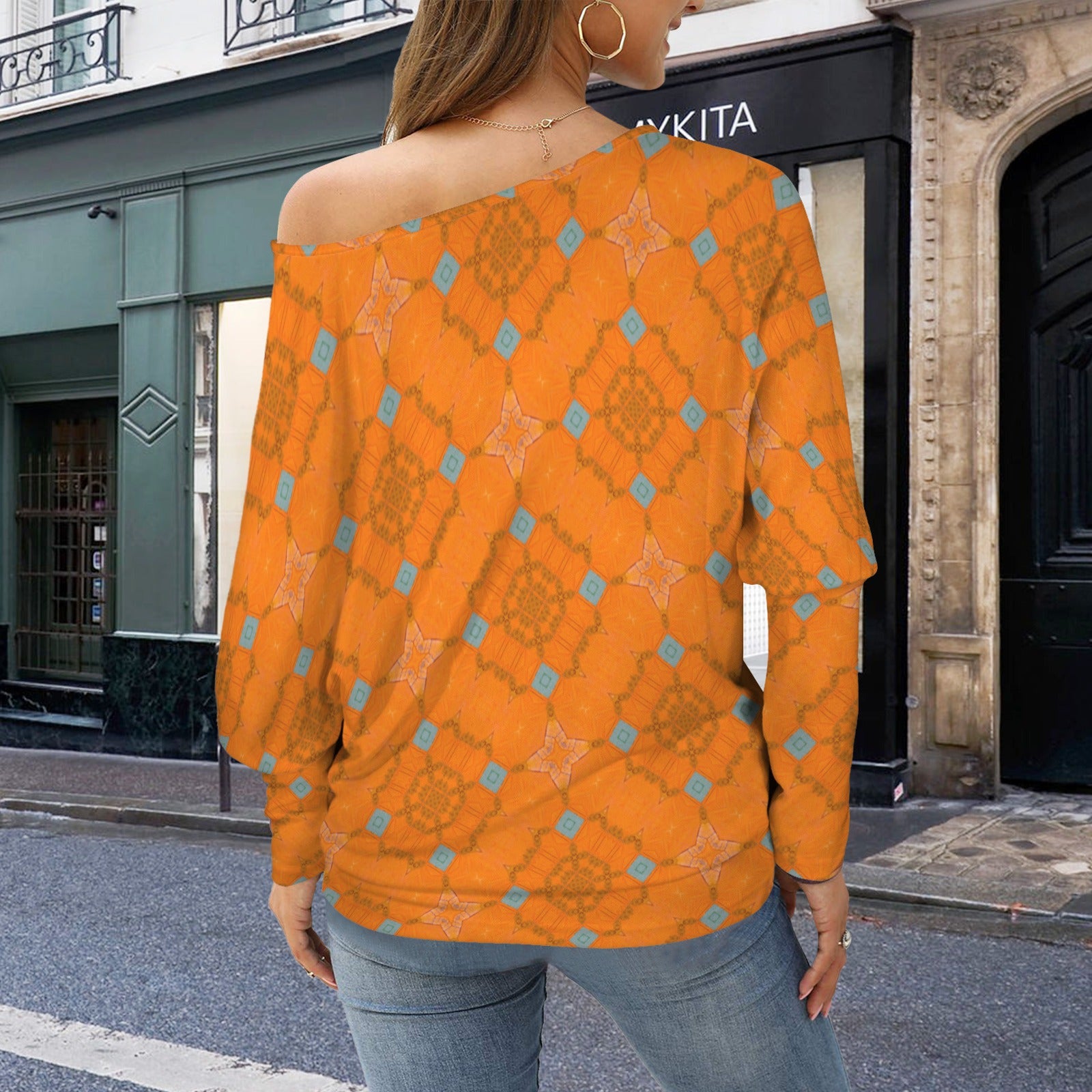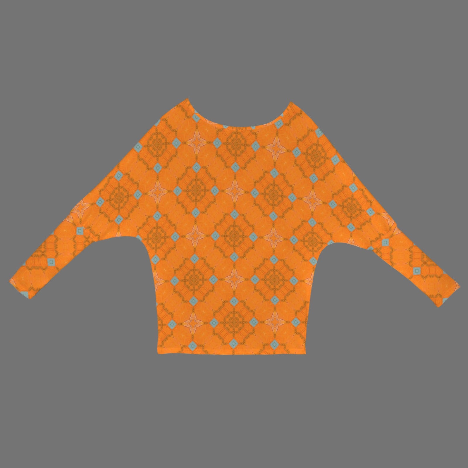 Batwing Long Sleeve Sweater Orange and Blue Butterfly