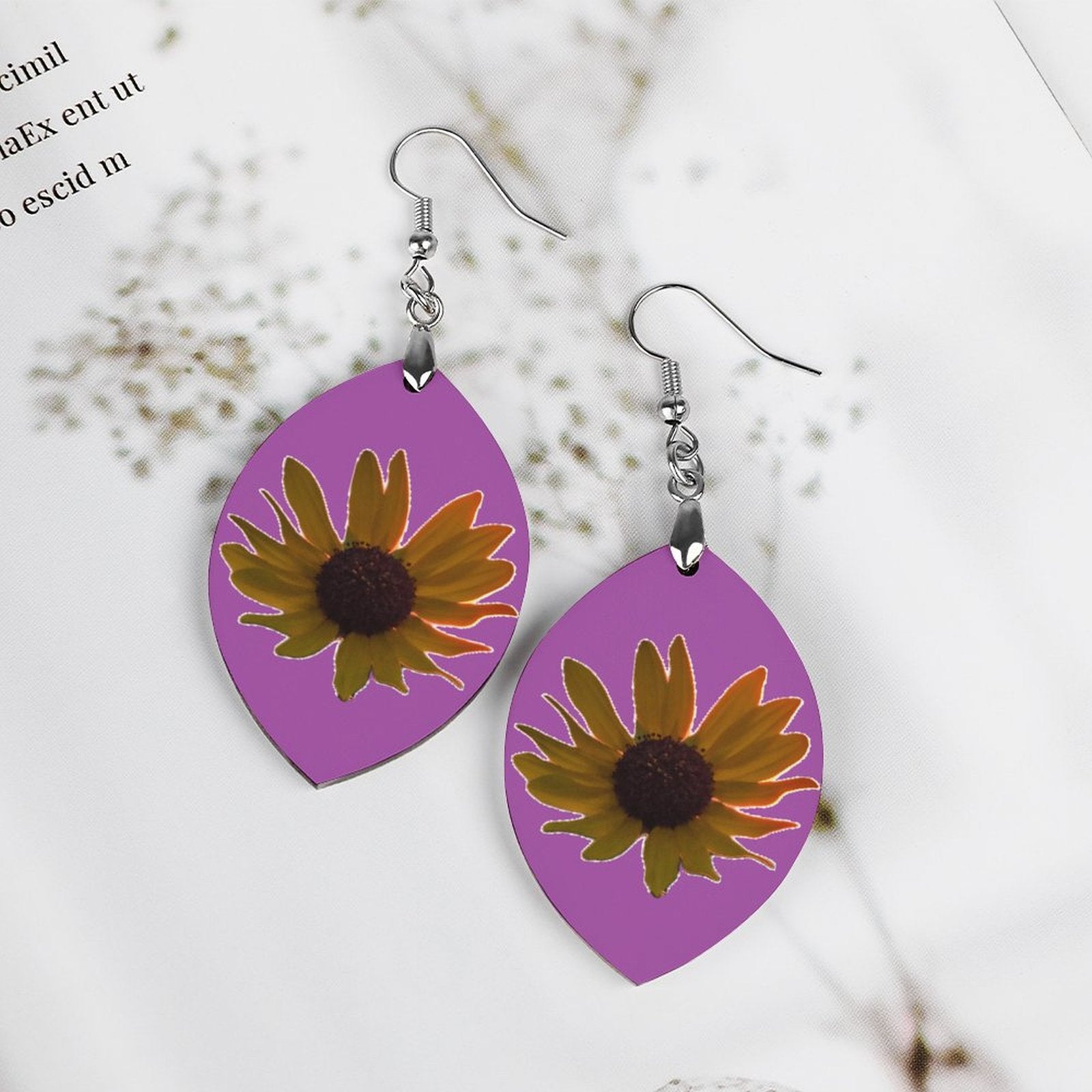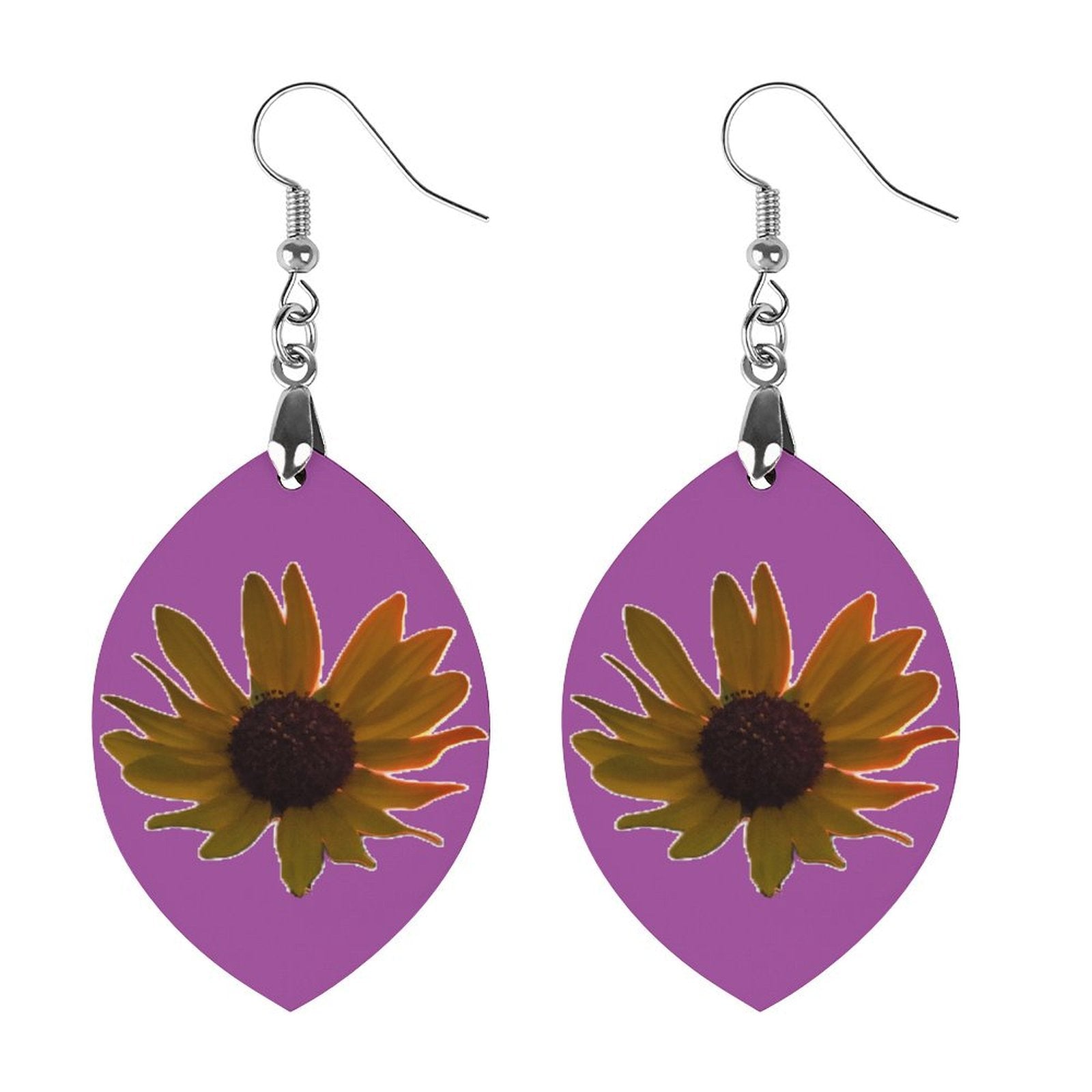 Wooden Oval Earrings Wild Sunflower Fuchsia