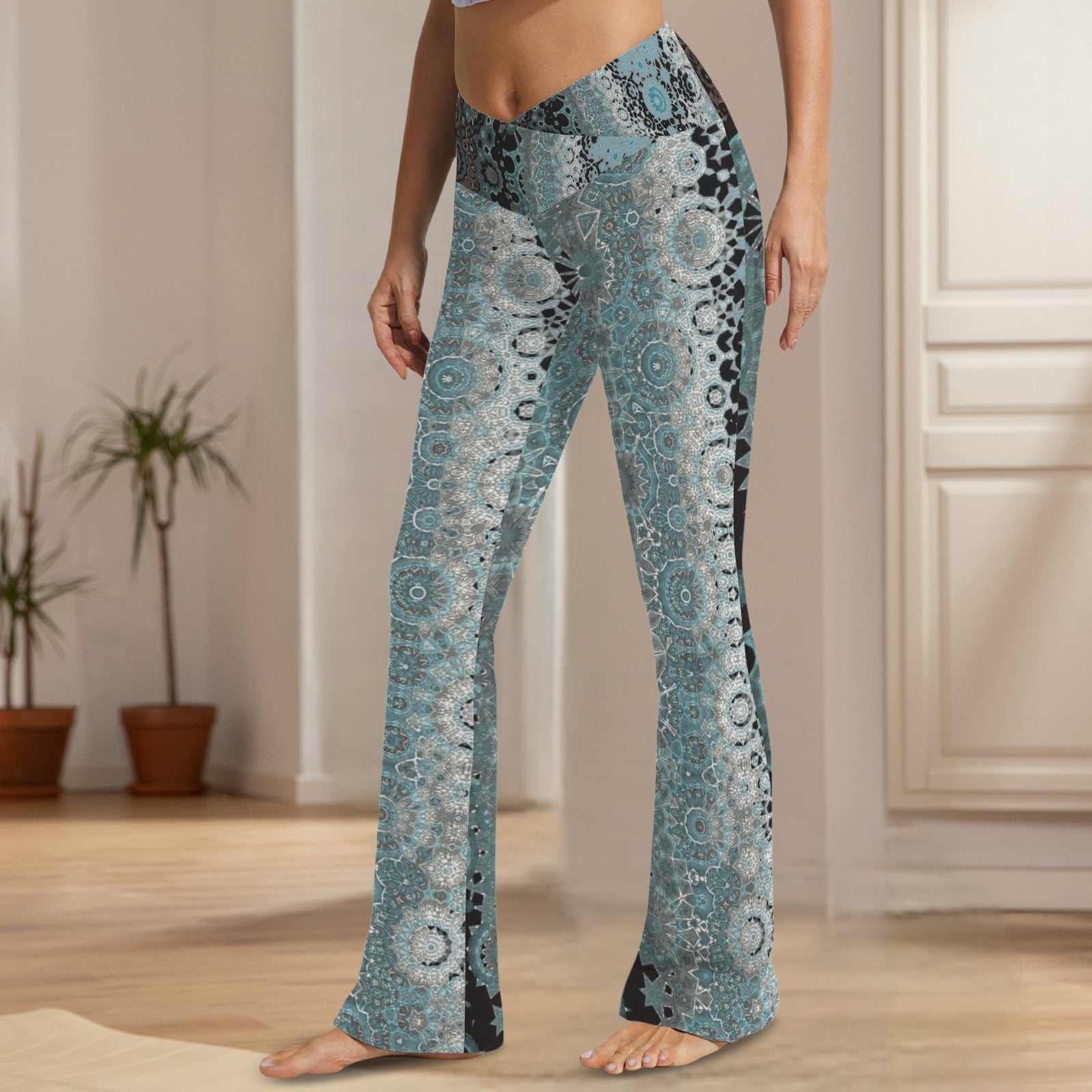 【Accessory Structure】The flare legging is designed with crossover waistband and V seam that gives you a flattering fit.