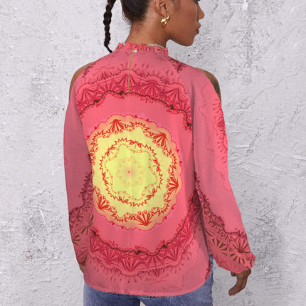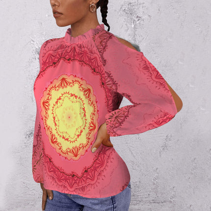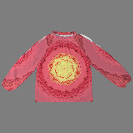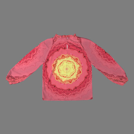 Long Slit Sleeve Blouse Red Coral Yellow Ombre