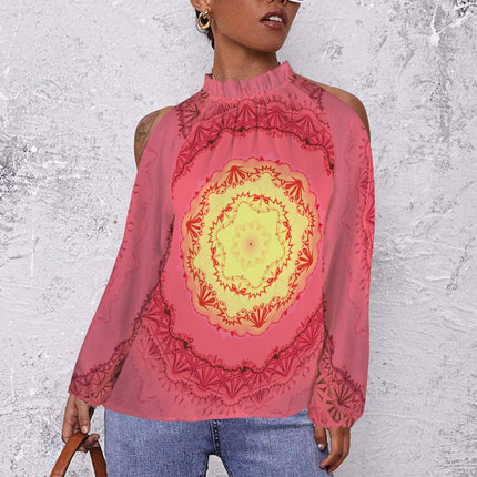 【Accessory Structure】The Lotus Leaf Round Neck Long Sleeve Pleated Off Shoulder Blouse features a round neckline with delicate lotus leaf details, long sleeves for a sophisticated touch, and an off-shoulder design for an elegant, flattering silhouette.