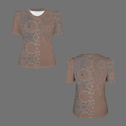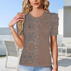 Puff Sleeve T-Shirt Brown and Silver Metallic Graphic