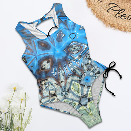 Tie Back Lace Up One Piece Swimsuit Old Blue Truck