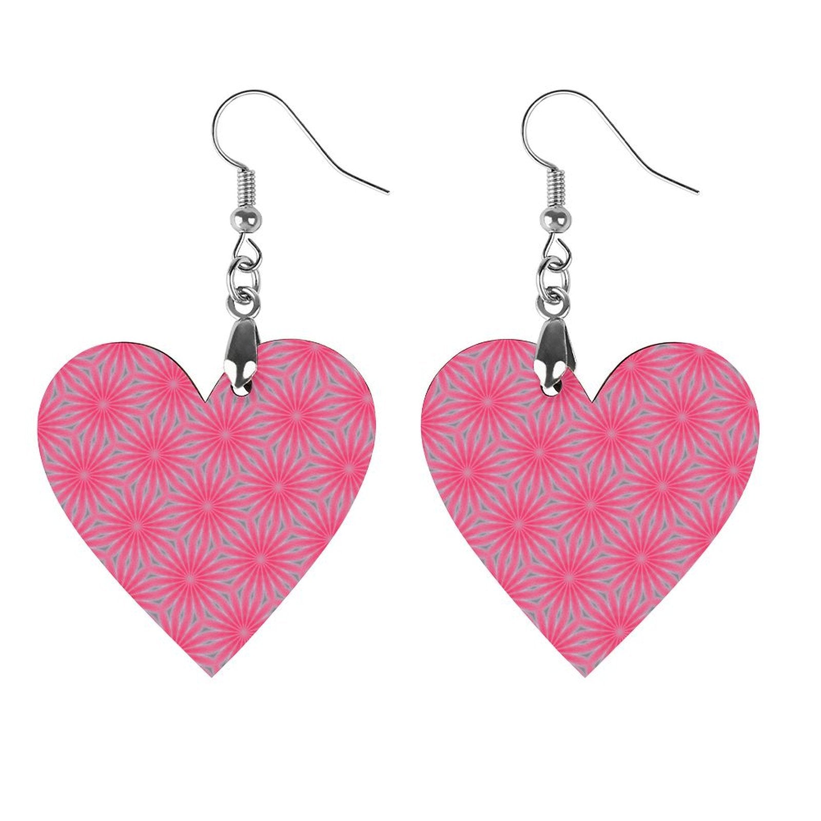 • Wooden Heart Earrings Pink Butterfly Balm Swirl