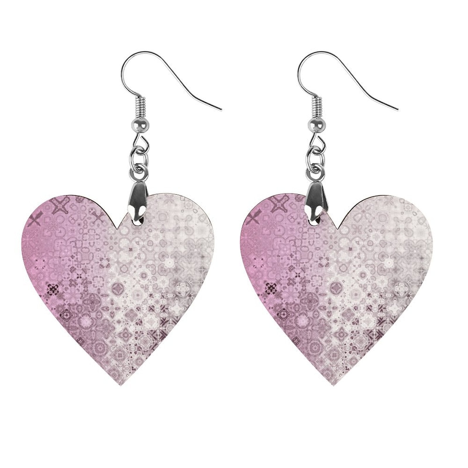 Wooden Heart Earrings Pink Glass Ombre
