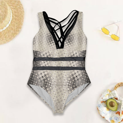 【Accessory Structure】Swimsuit features delicate mesh details and a flattering V-neck. With soft chest pads.