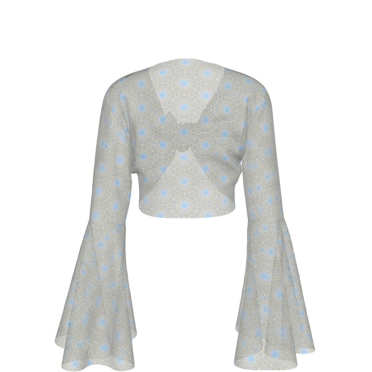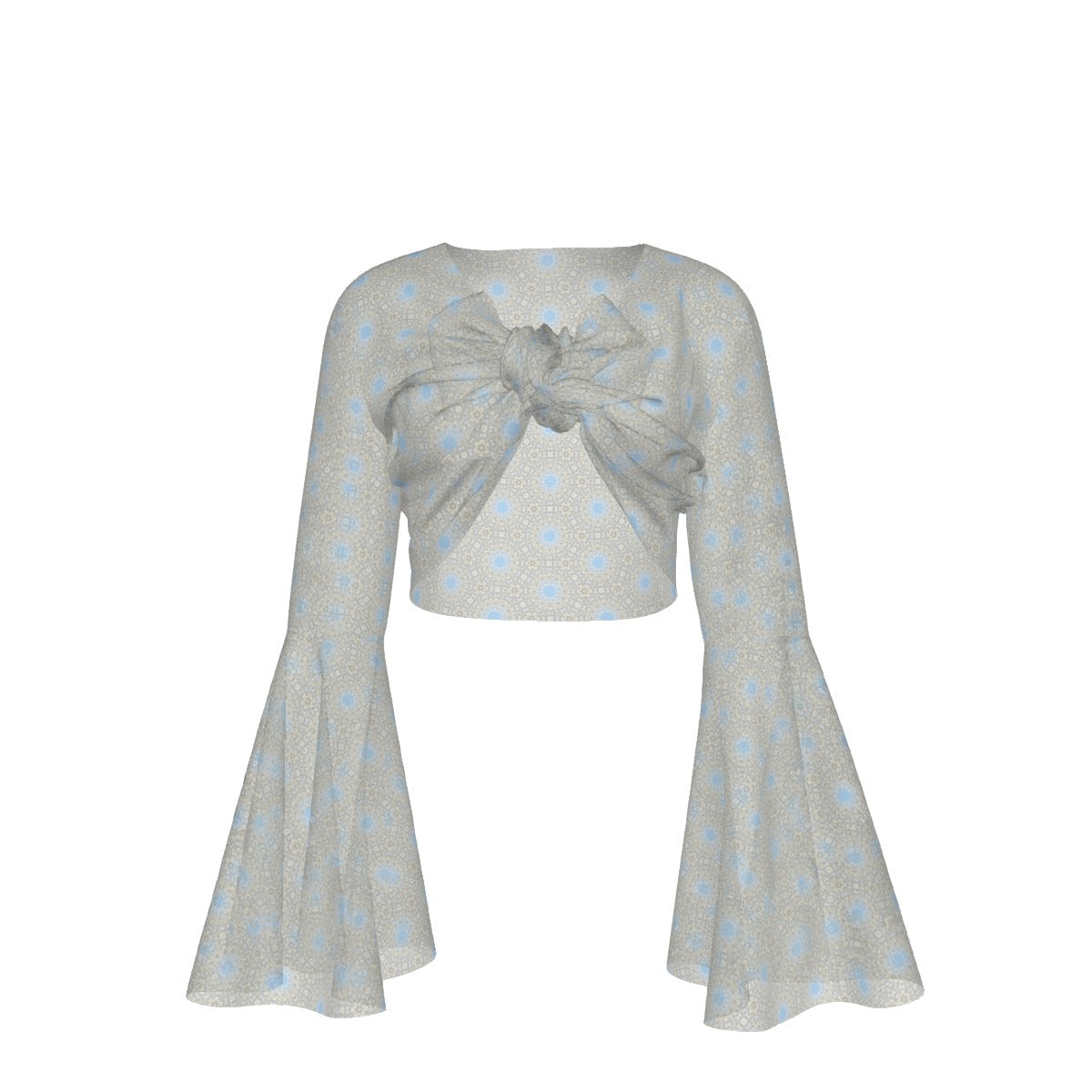 Ruffled Tie Front Cropped Blouse Dandelion Blue Geometric