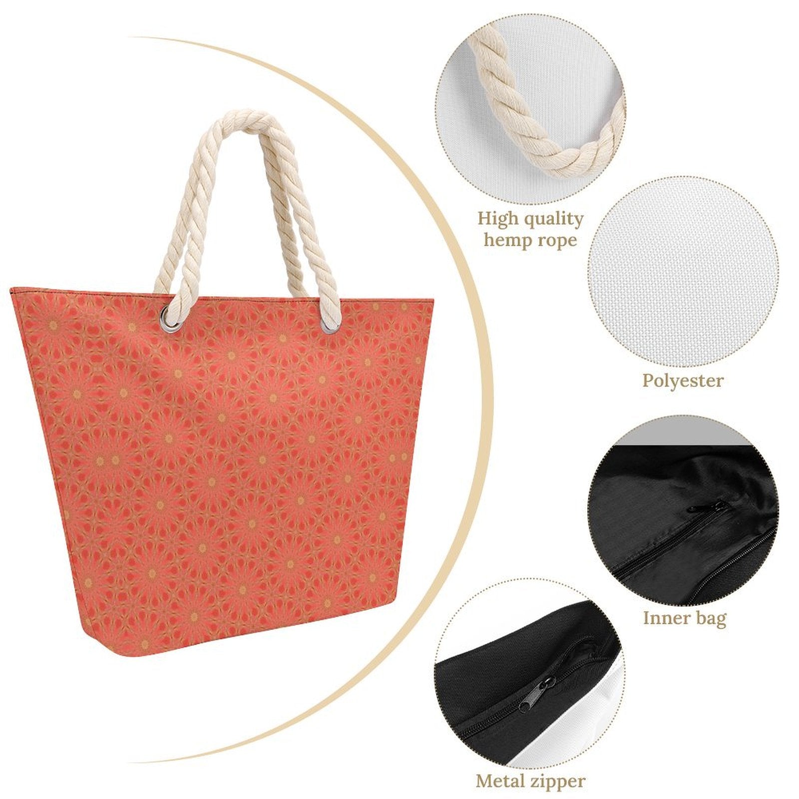 Hemp Rope Tote Bag Orange and Yellow Flowers