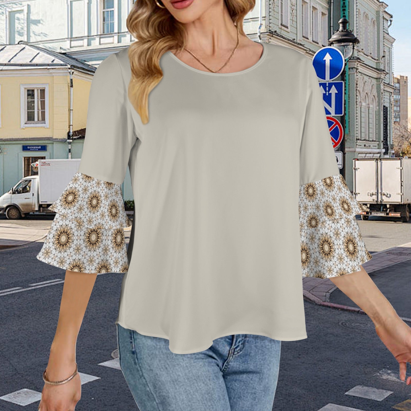【Accessory Structure】Classic round neck,3/4 ruffled bell sleeve, curved hem, elegant and romance,the perfect shape of the blouses can hide tummy or hip fat.