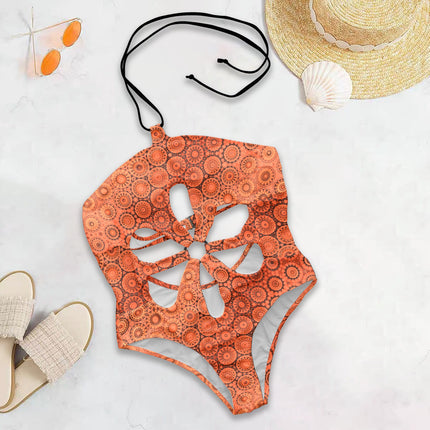 Flower Cut Out Once Piece Swimsuit Orange Sunset