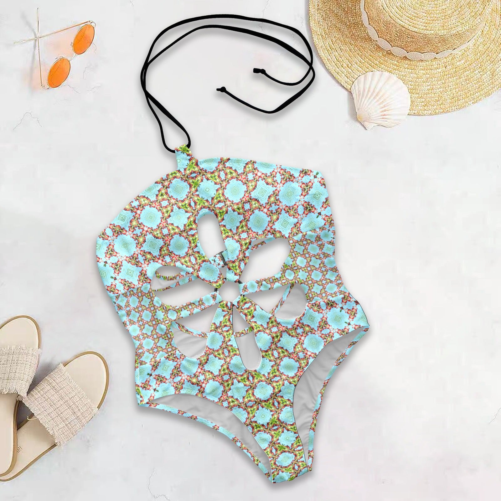 Flower Cut Out One Piece Swimsuit Buffalo Berries Blue Cascade
