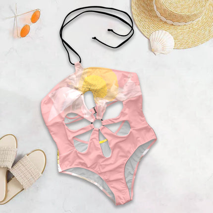 Flower Cut Out One Piece Swimsuit Daisy Watercolor Coral