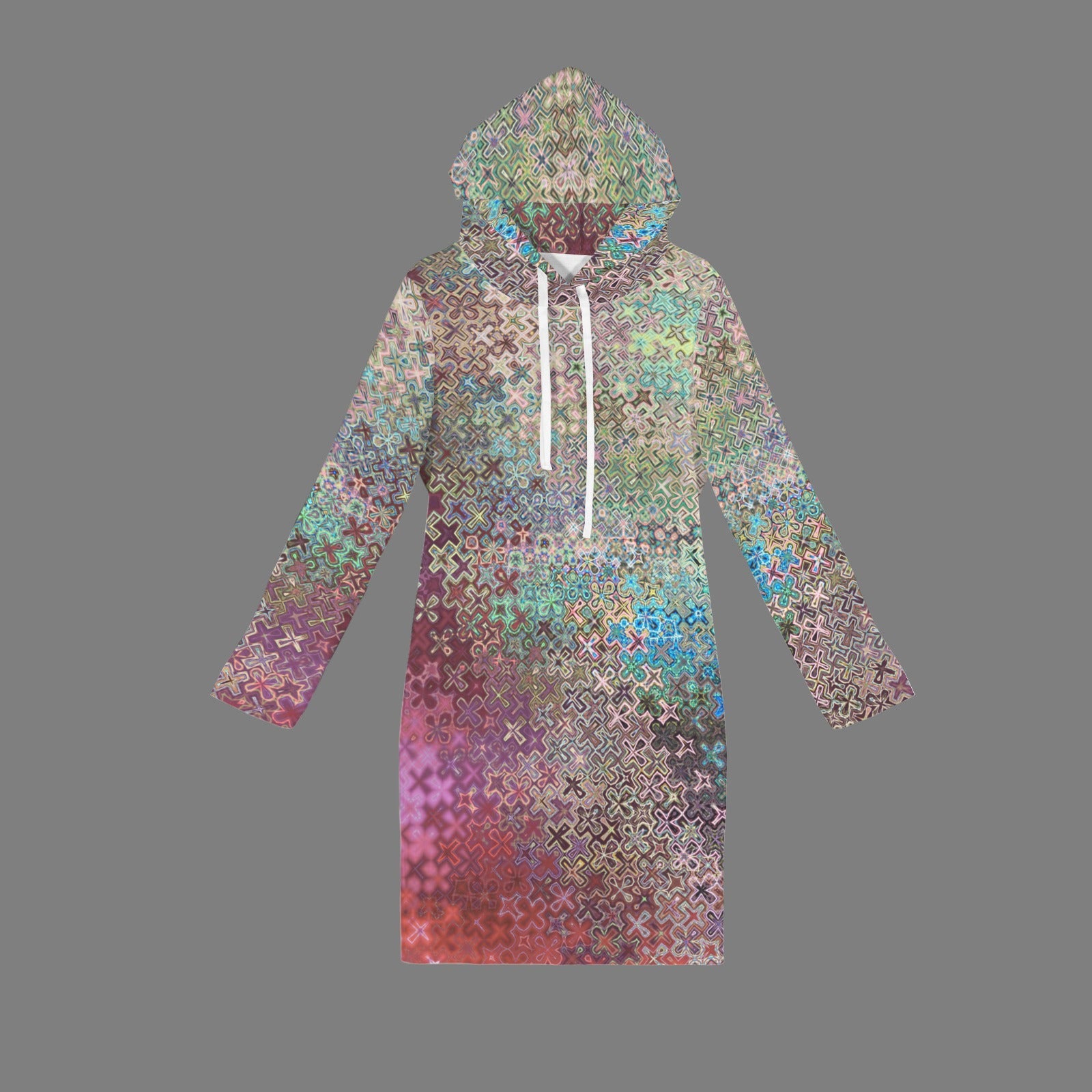 Hoodie Dress Pheasant Feathers Pink Multi Ombre