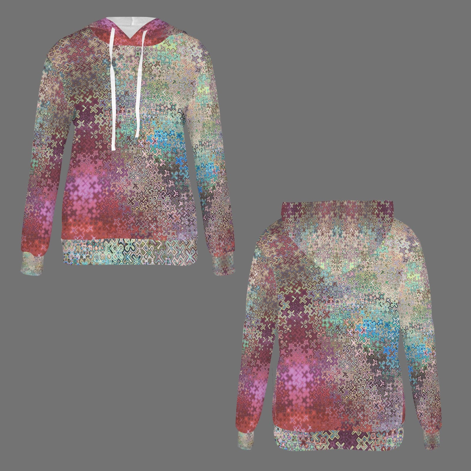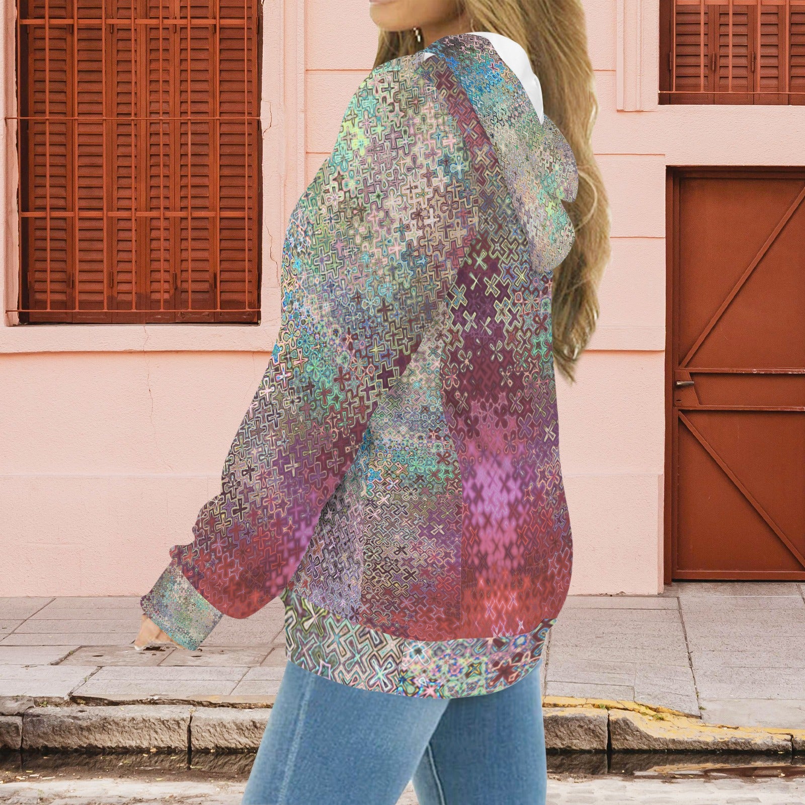 Hoodie Peacock Feathers Pink Turquoise Ombre