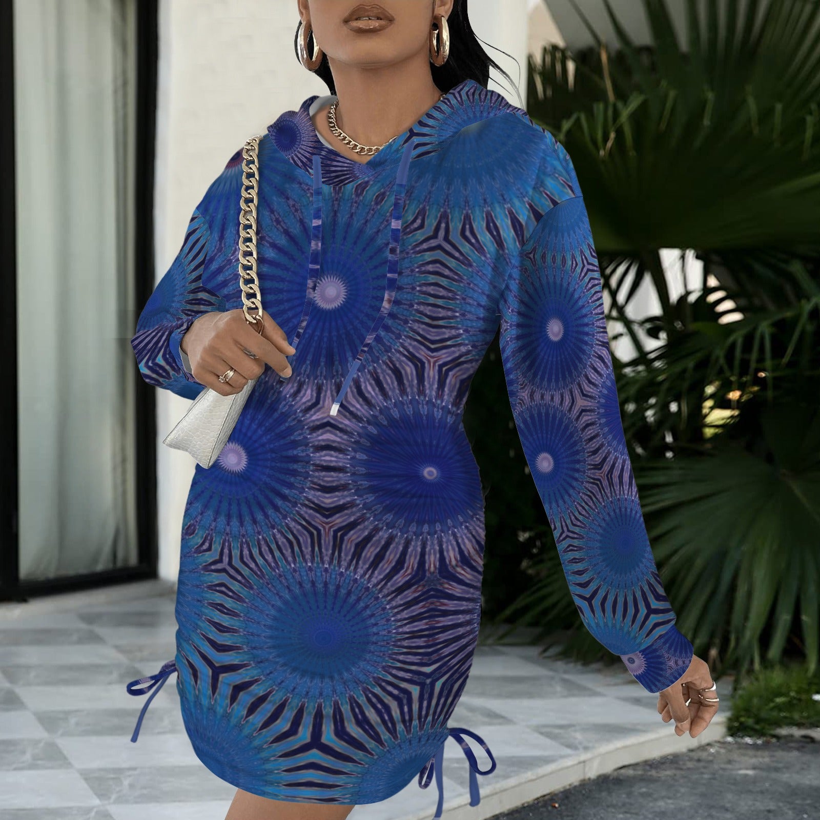 Long Sleeve Hooded Sweatshirt Dress Got the Blues