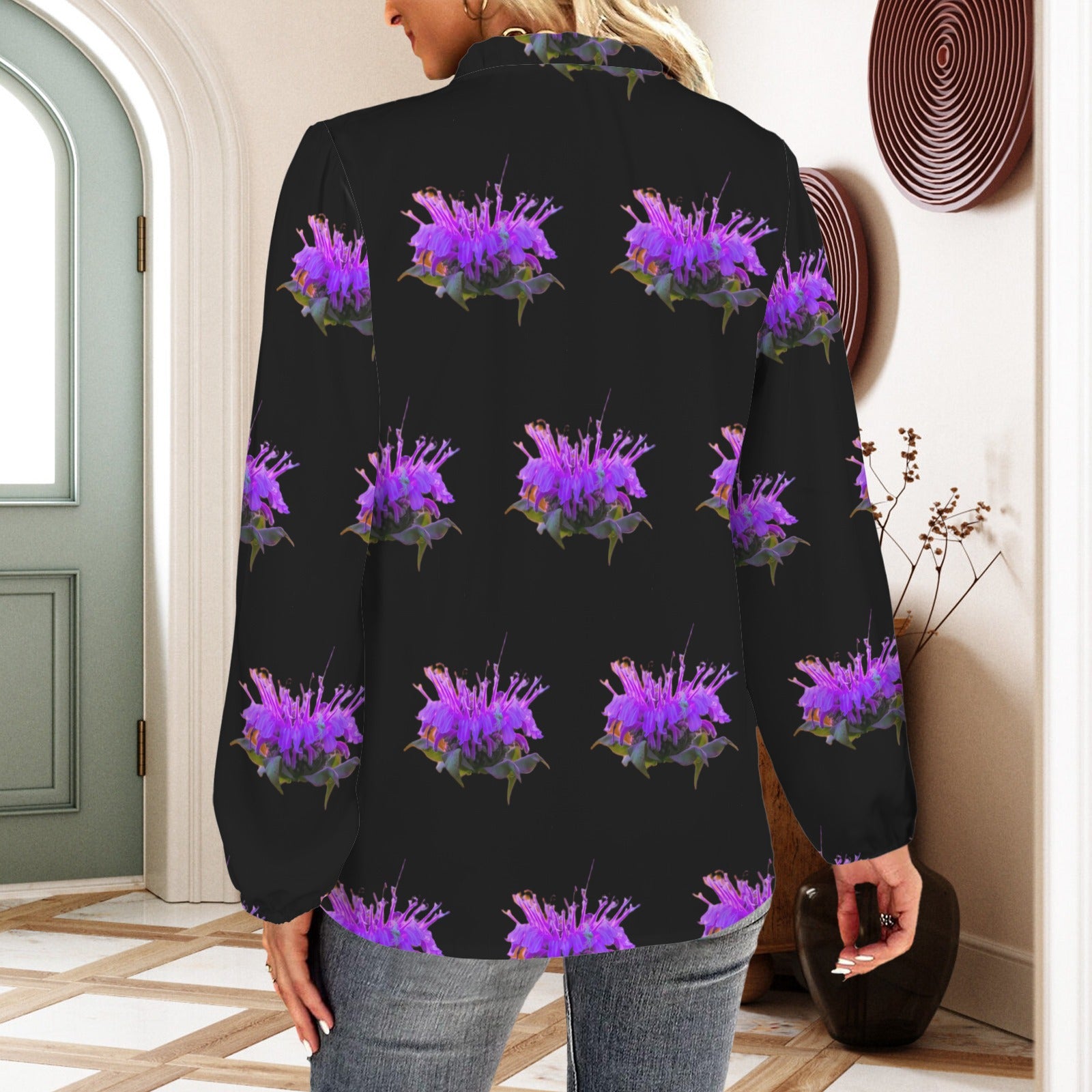 Long Sleeve Ruffled Blouse Bergamot Black