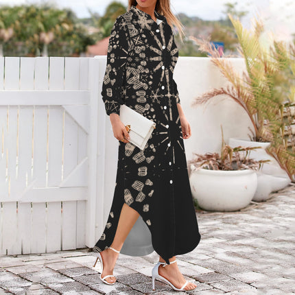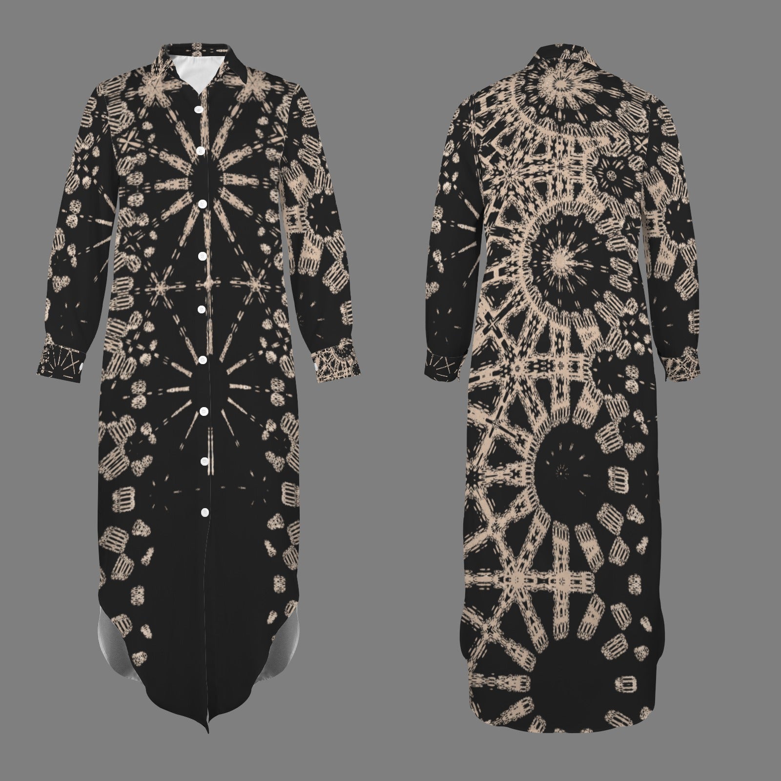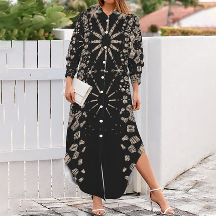 【Accessory Structure】Button;Long Sleeve;Shirt Dress;Maxi Dress.