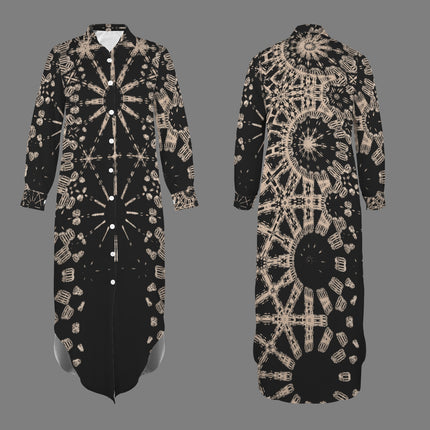 Long Sleeve Shirt Dress Taupe and Black Graphic