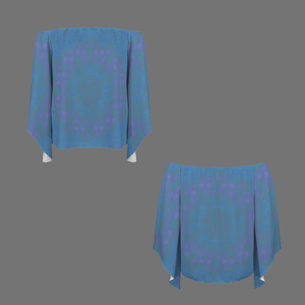 Trumpet Sleeve Off Shoulder Blouse Blue Lavendar Watercolor