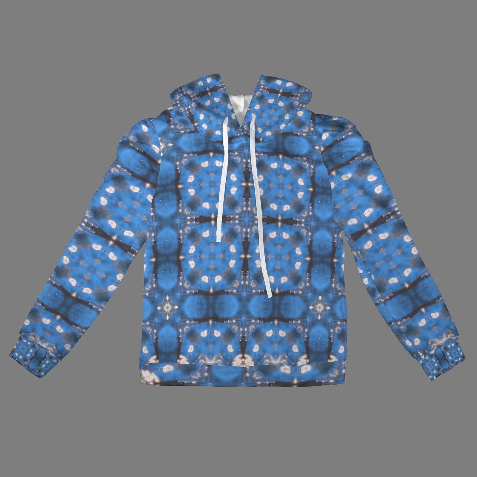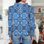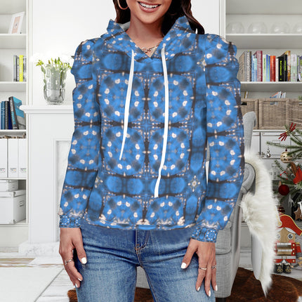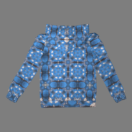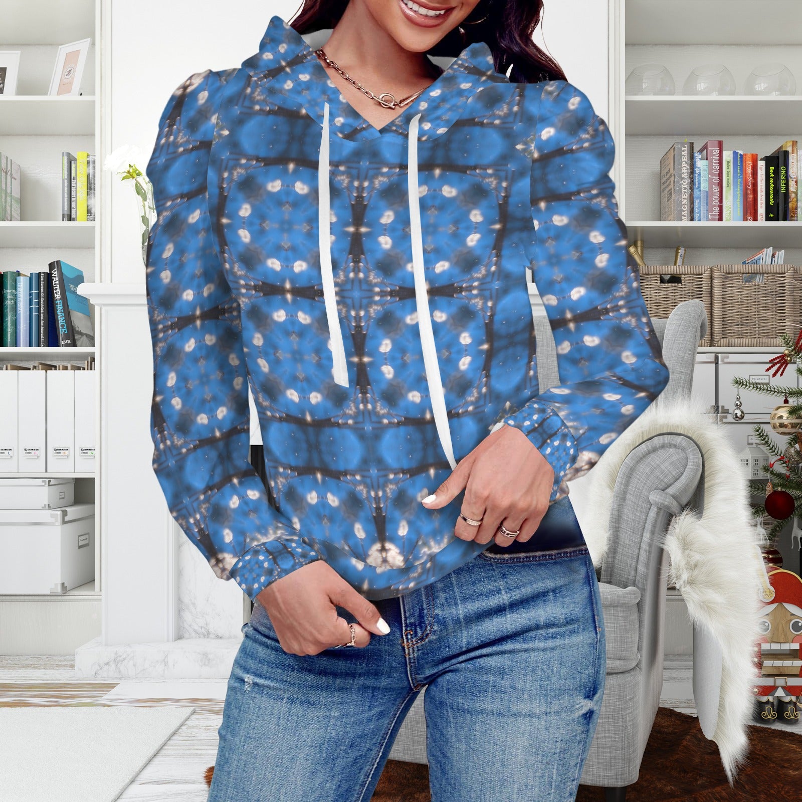 Puff Sleeve Hoodie Blue Tartan Plaid