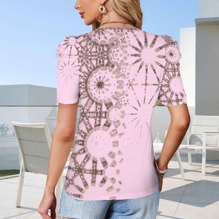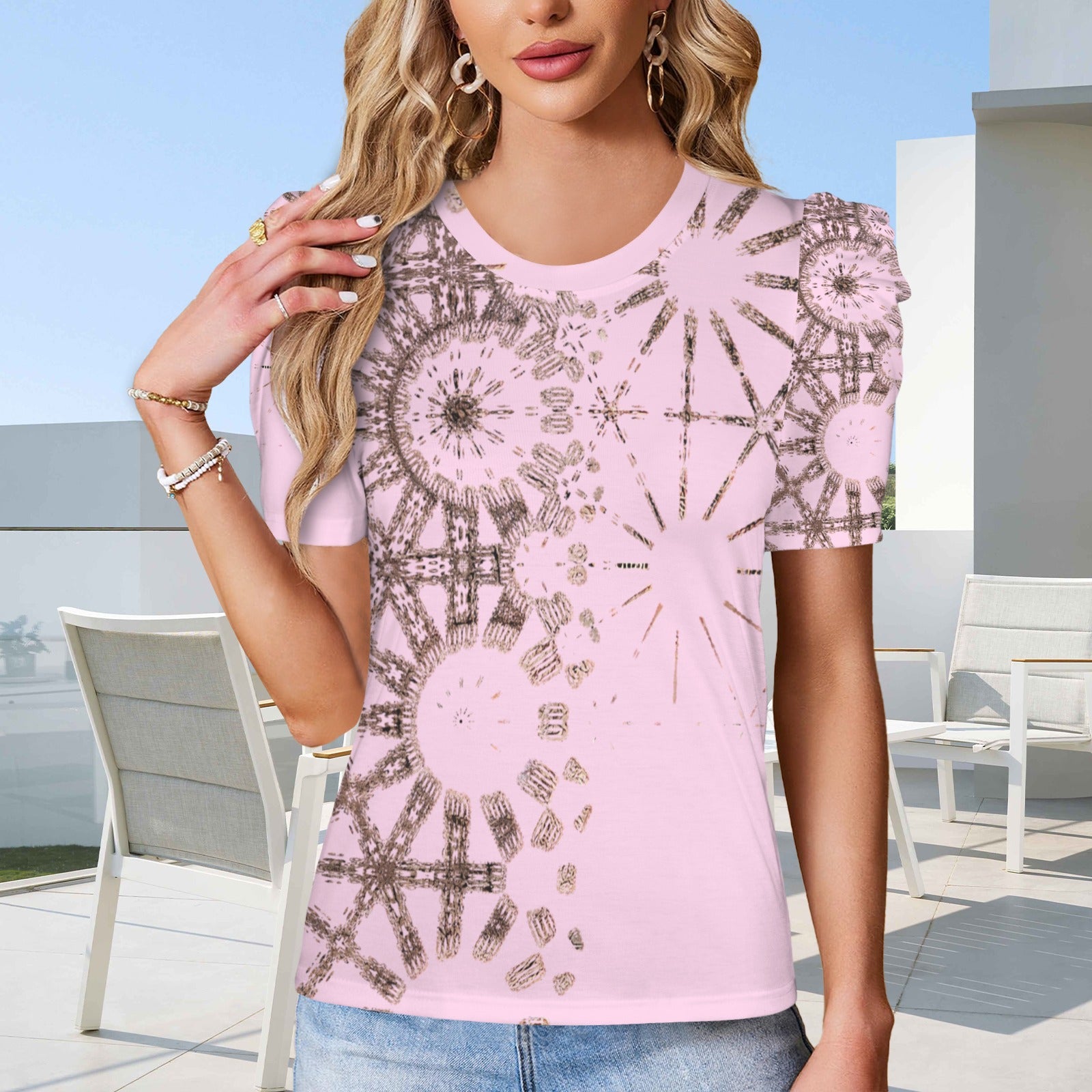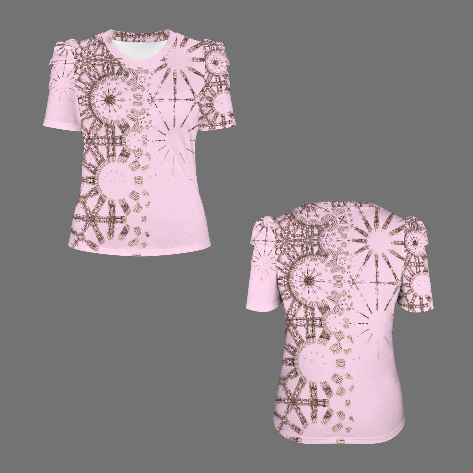 Puff Sleeve T-Shirt Pink and Copper Metallic Graphic