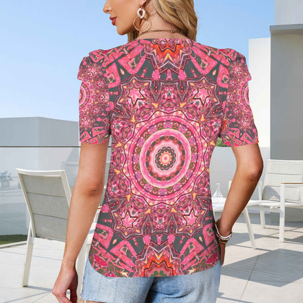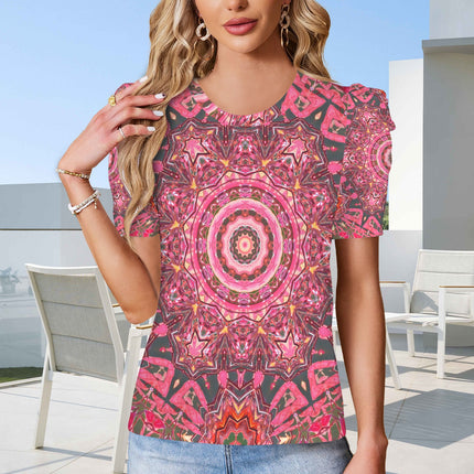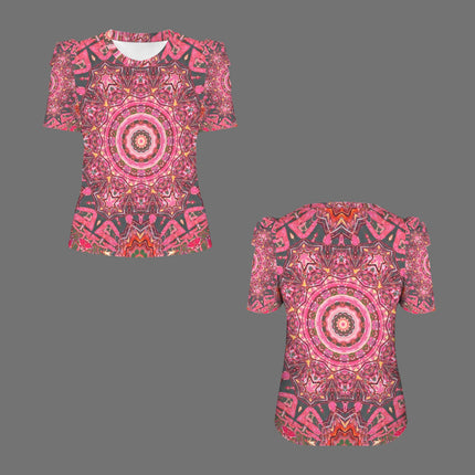 Puff Sleeve T-Shirt Pink and Gray Medallion