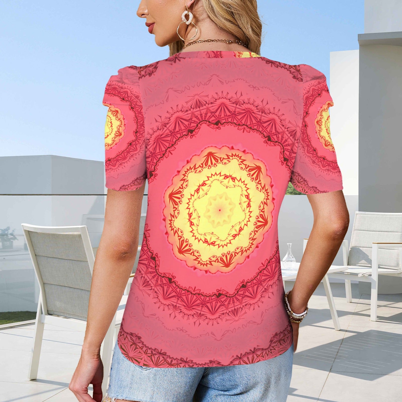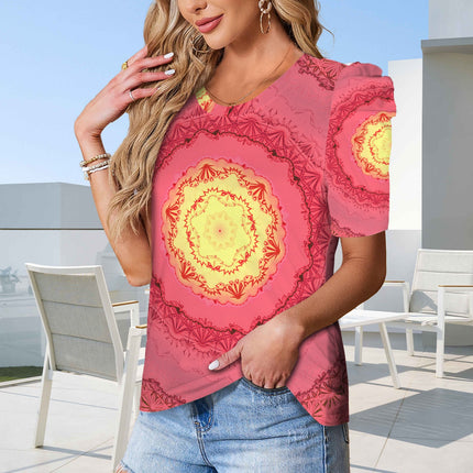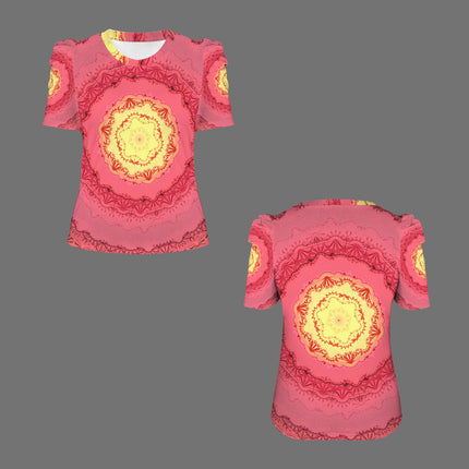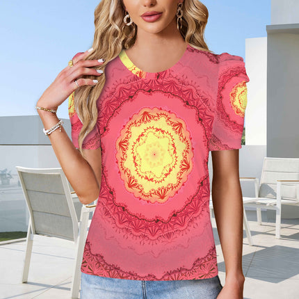 Puff Sleeve T-Shirt Pink and Yellow Medallion