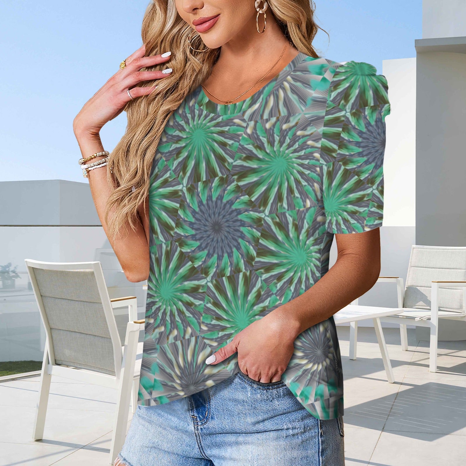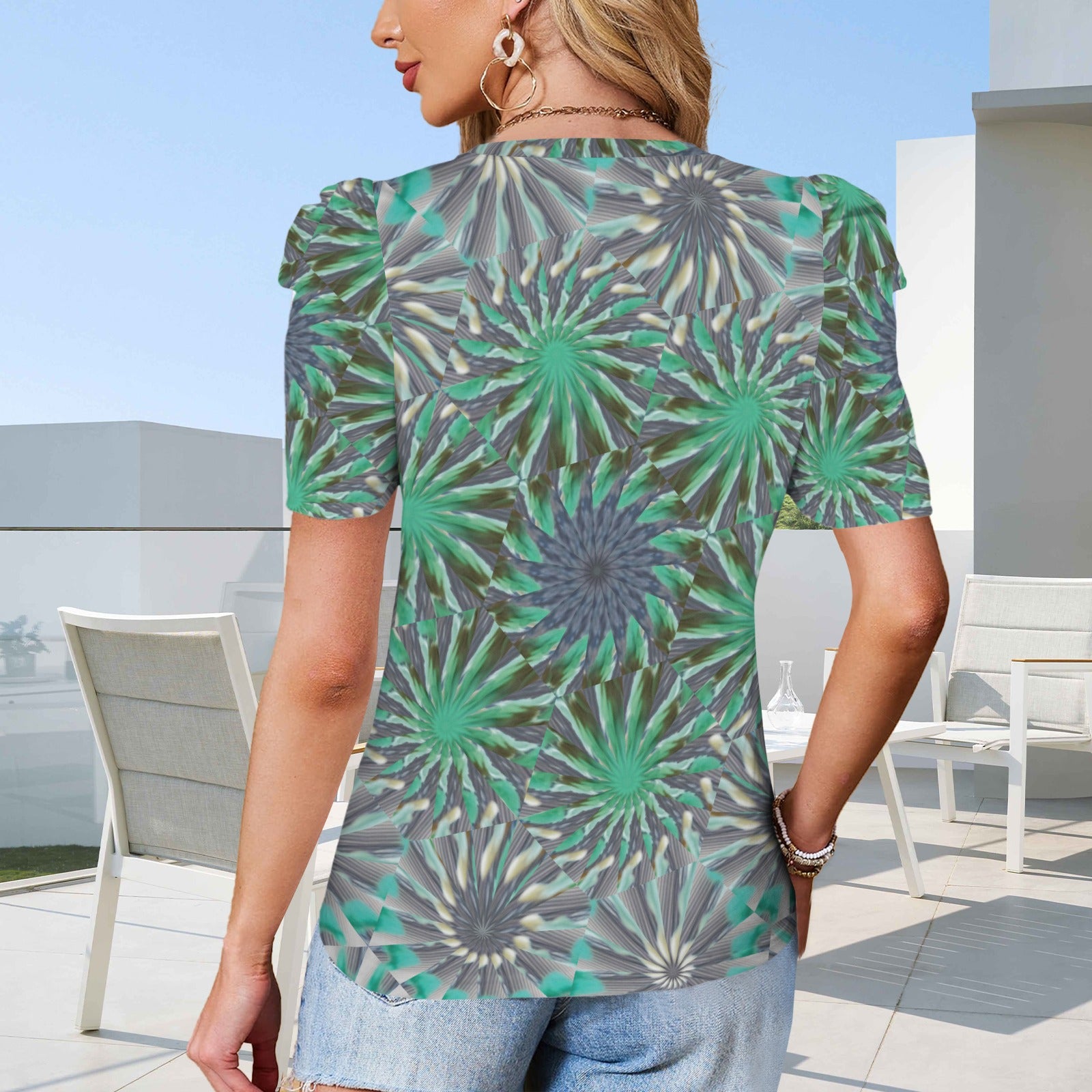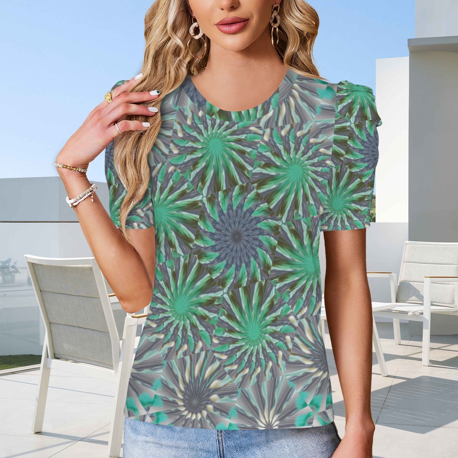 Puff Sleeve T-Shirt Turquoise Medallion