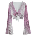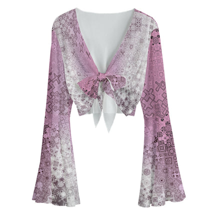 Ruffled Tie Front Cropped Blouse Pink Glass Ombre