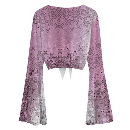 Step into our blouse and let your charm shine through! The lace-up design and bell sleeves add an extra touch of elegance to your look. The mesh fabric creates a mystical allure that will leave everyone captivated. Pair it with a camisole and shorts for a chic summer look. Shop now to elevate your wardrobe!