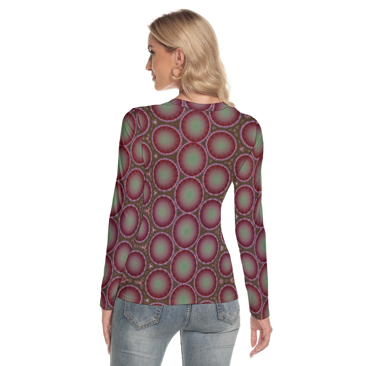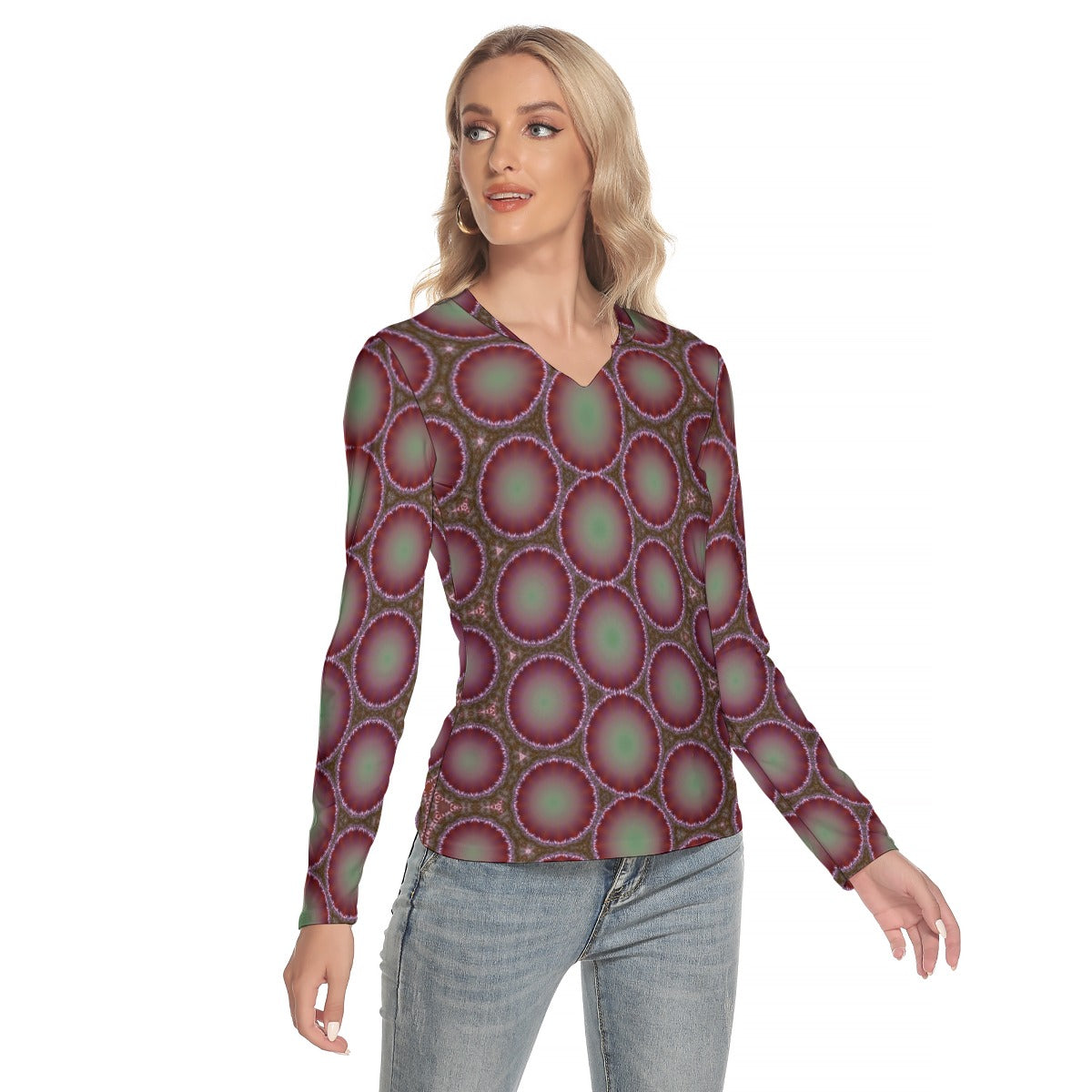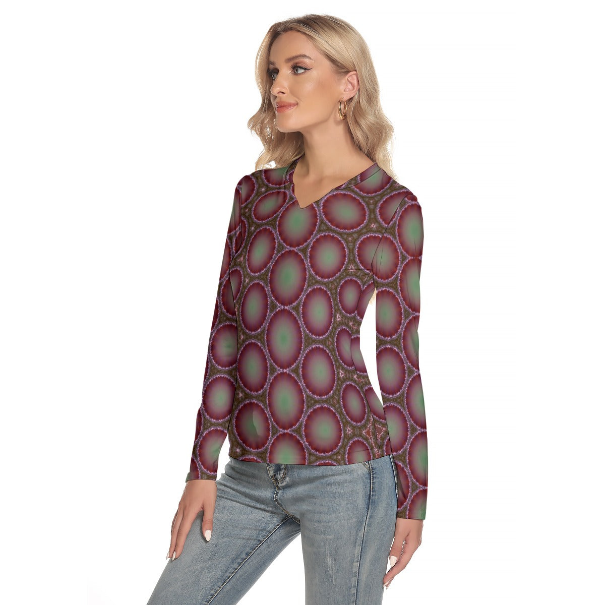 Versatile long sleeved V neck T-shirt created from the image of a sage plant in bloom on the South Dakota prairie.