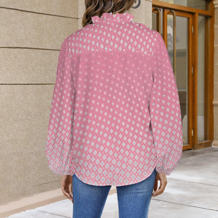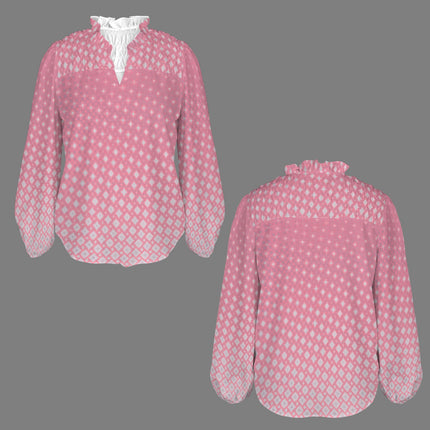 V Neck Pleated Long Sleeve Pink Sunrise Ombre