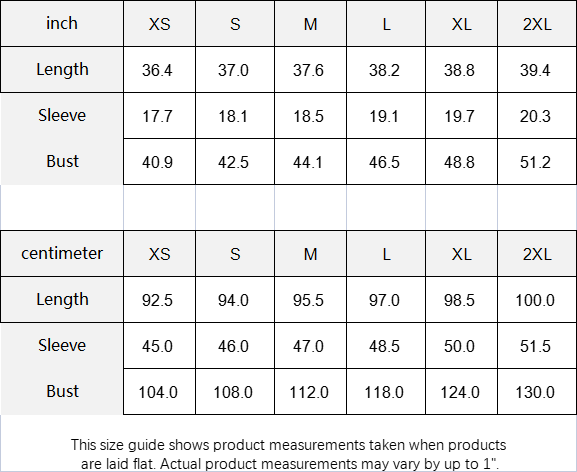 This size guide shows product measurements taken when products are laid flat. Actual product measurements may vary by up to 1".