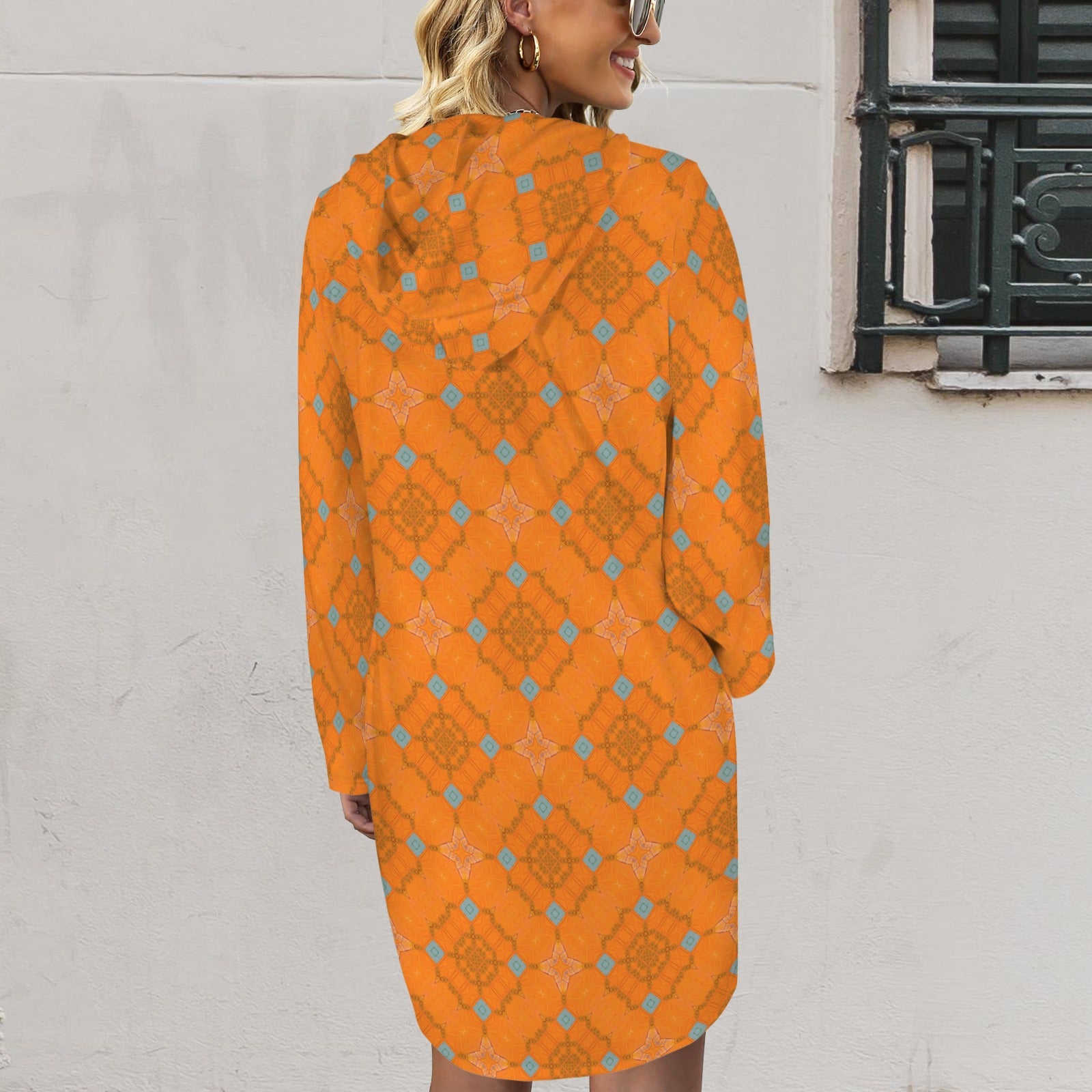 【Accessory Structure】The Women's Drawstring Pocket Hooded Dress features a drawstring-adjustable hood, front pockets for convenience, and a relaxed fit with a cozy, casual design.
