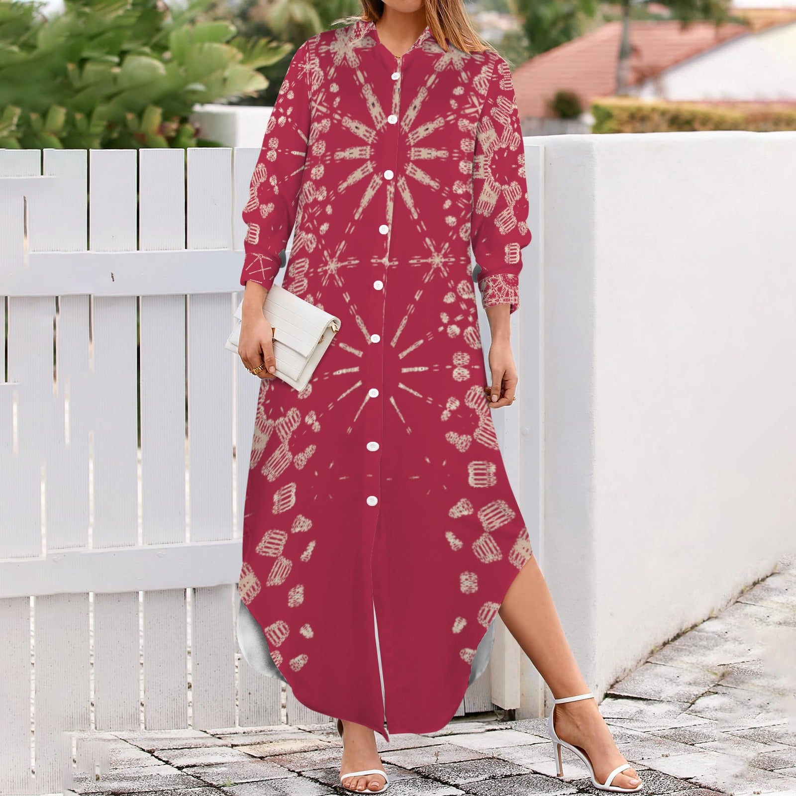 【Accessory Structure】Button;Long Sleeve;Shirt Dress;Maxi Dress.