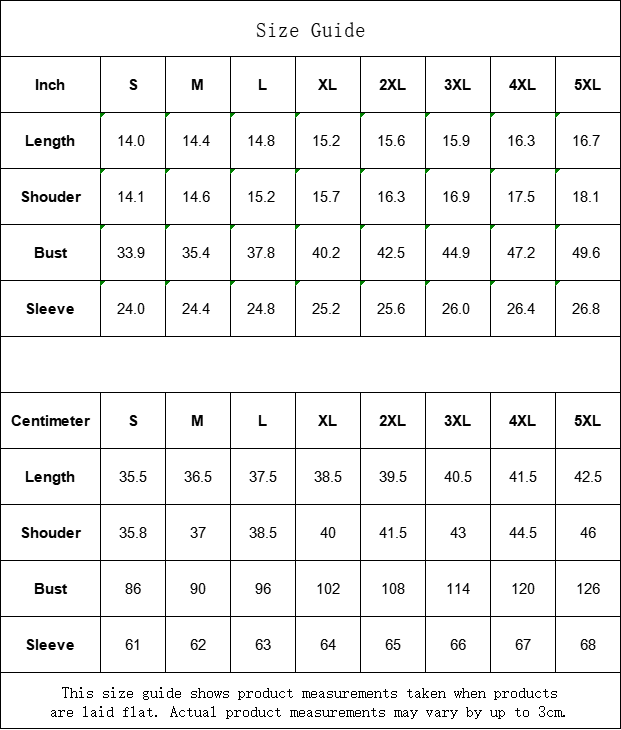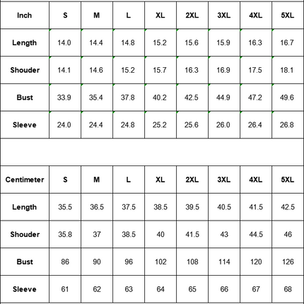 Centimeter S M L XL 2XL 3XL 4XL 5XL