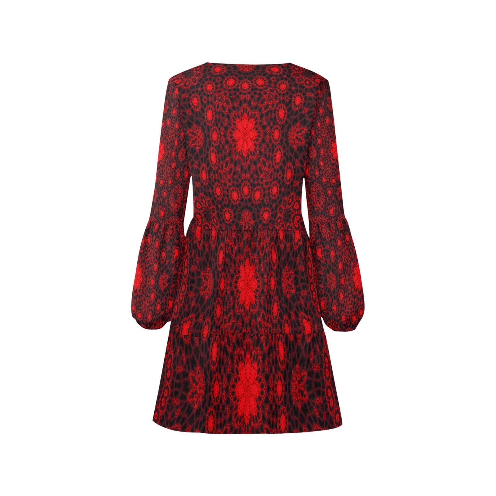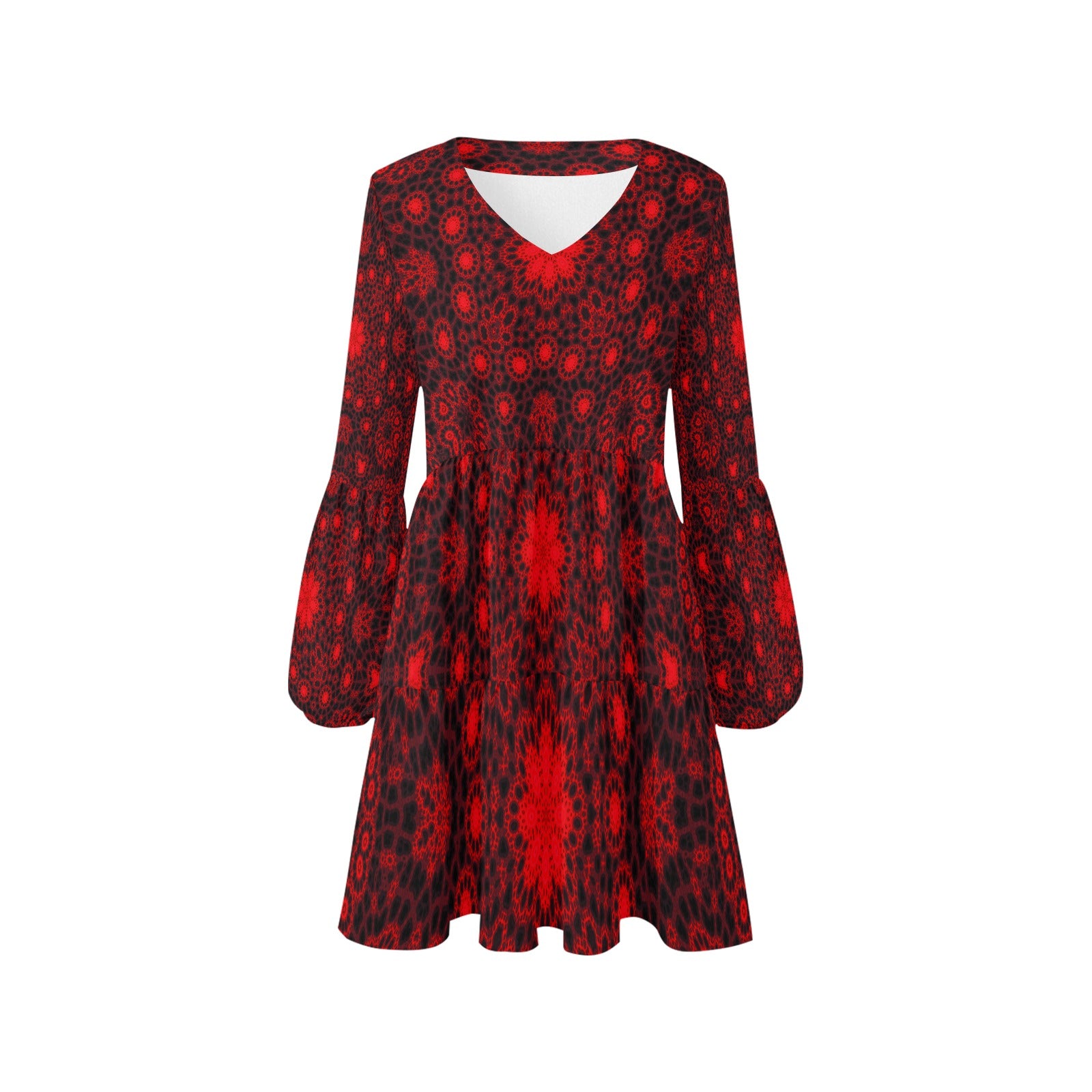 • V Neck Flowy Dress Red and Black Mandela