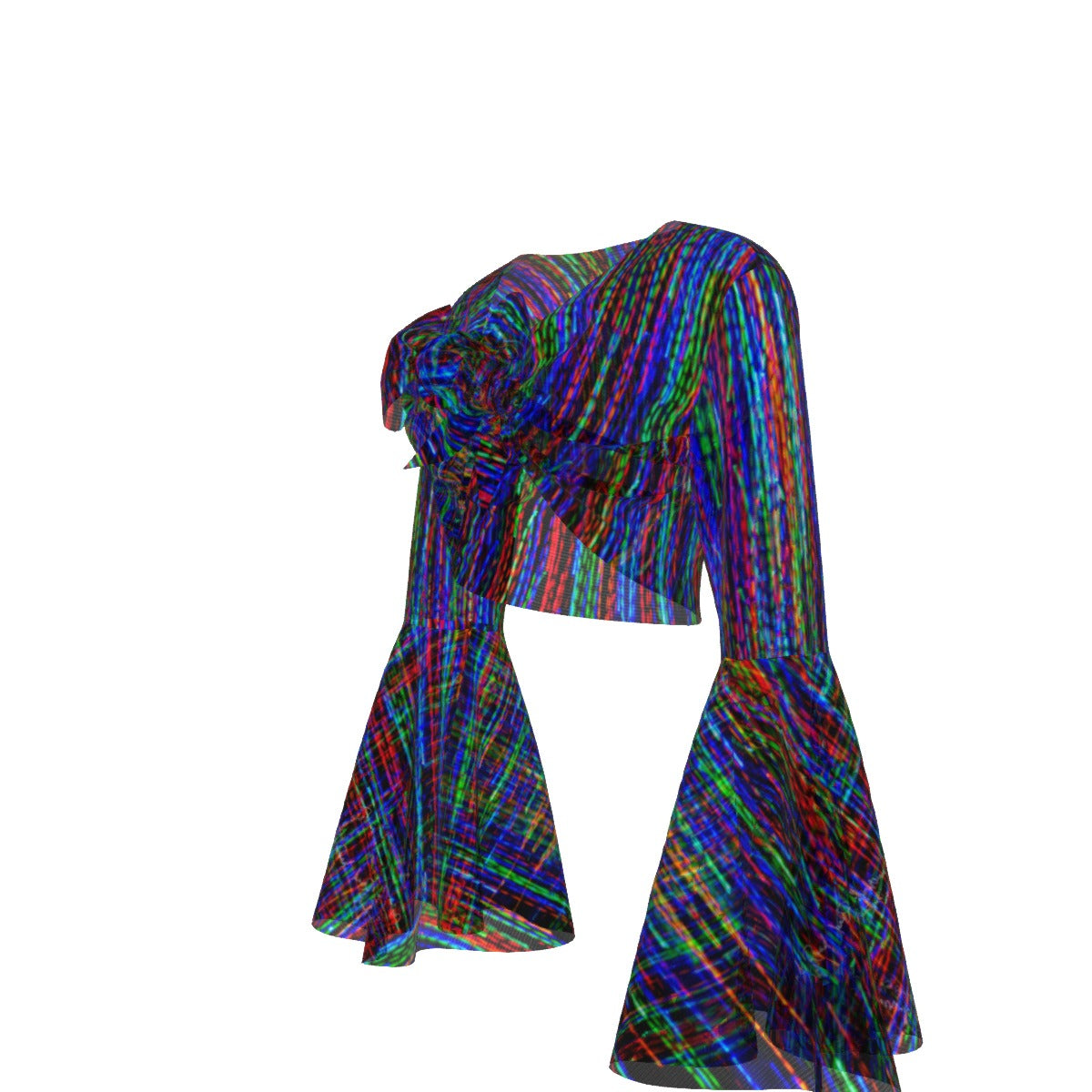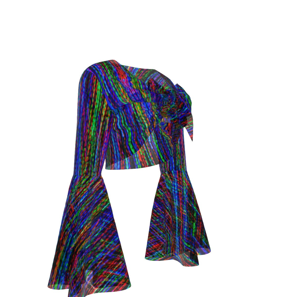 Ruffled Tie Front Cropped Blouse Bright Lights Multi