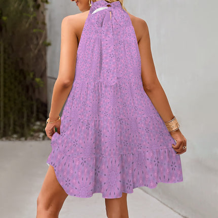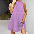 【Accessory Structure】Womens Dresses/ Mini Dress/ Halter Dress/ Sun Dress Women Casual Summer/ Sleeveless Dress For Women/ Vacation Beach Dresses For Women/ Babydoll Dress/ Tank Top Dress/ Flowy Dresses For Women/ A Line Pleated Dress/ Mini Shift Dress/ Elastic Waist/ Ruffle Halter Neck/ Tiered/ Flowy Swing/ Open Back/  Loose/ Tie-Self Belt On Back.