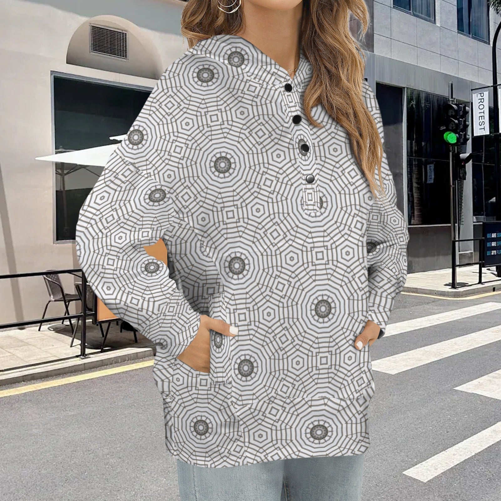 【Accessory Structure】The Women's Button V Neck Pocket Hoodies feature a V-neckline with button detailing, a cozy hoodie and functional front pocket for added convenience.
