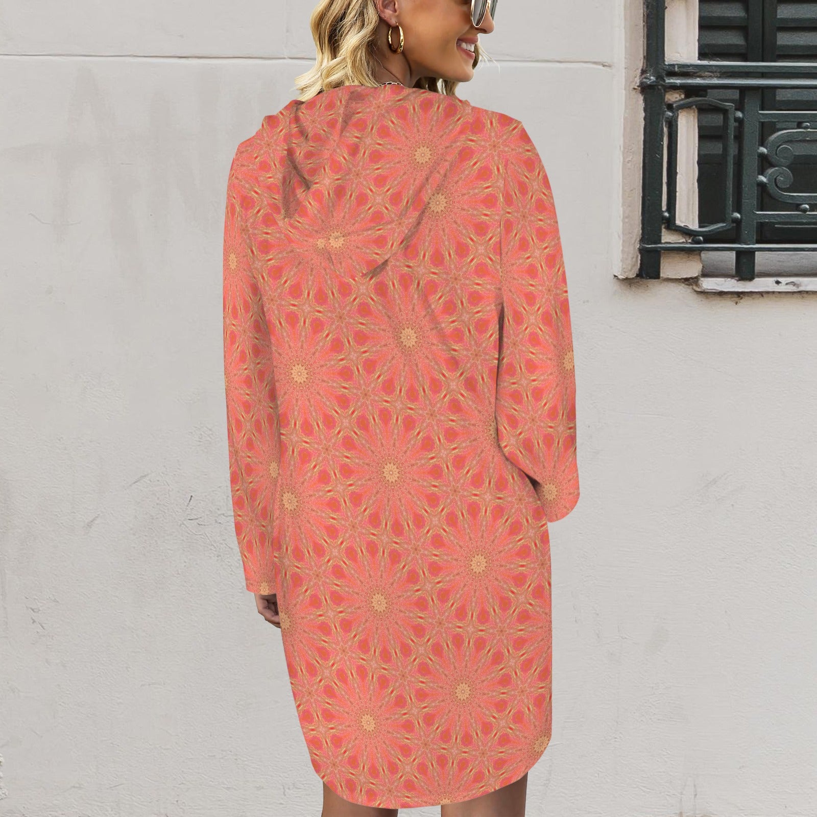 Hoodie Dress Tangerine and Yellow Flower