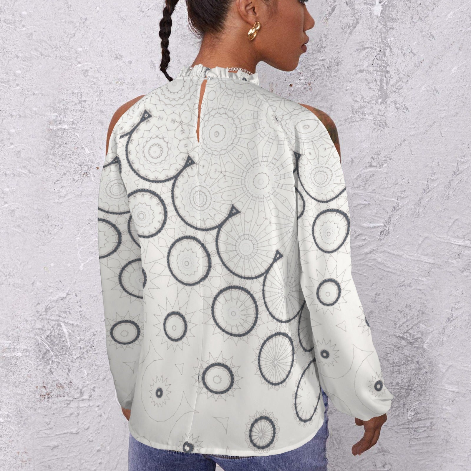 【Accessory Structure】The Lotus Leaf Round Neck Long Sleeve Pleated Off Shoulder Blouse features a round neckline with delicate lotus leaf details, long sleeves for a sophisticated touch, and an off-shoulder design for an elegant, flattering silhouette.
