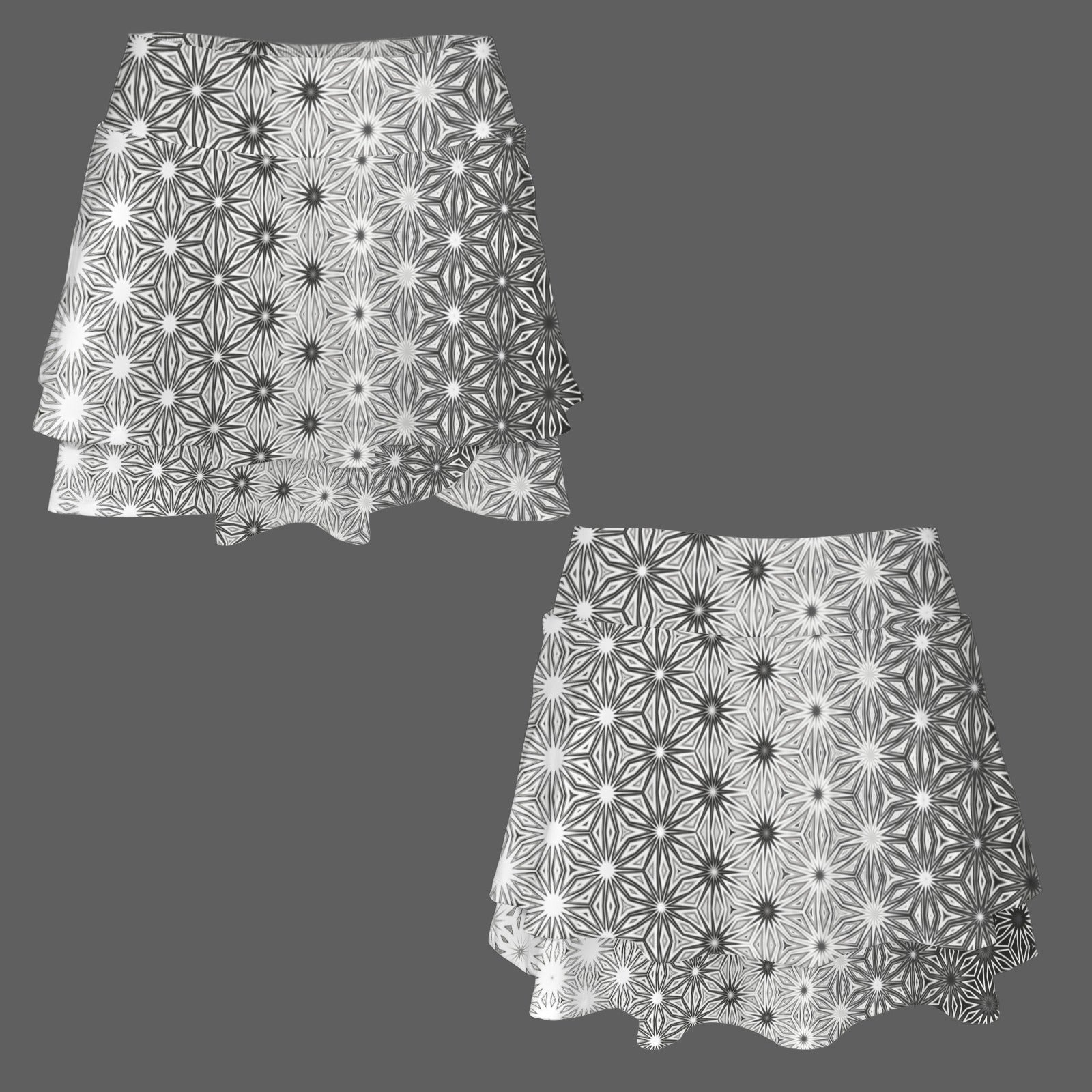 Ruffled Pocket Sports Skirt Black and White Geometric